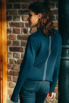 Von vorne Ohhhh, von hinten Lala! Hochgeschlossener Pullover mit angestricktem, weichem Stehkragen. Besonders gelungen: die Kombination der unterschiedlichen Strickarten. Aufeinander abgestimmt und mit fließenden Übergängen wechseln breitere und enger gestrickte Querrippen aus rechten Maschen in Vorderteil, Kragen und Ärmeln. Das Rückenteil ist schlicht in glatt rechts mit einem zarten, aber kontrastfarbenen, mittigen Streifen gestrickt. Quasi ein BACK UP für den perfekten Abgang.